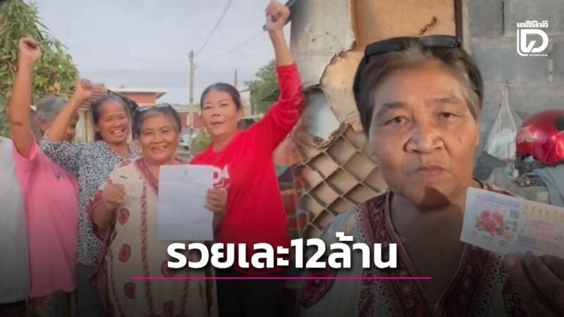 ป้าวัย 59 ปี ชาว จ.มหาสารคาม ดวงเฮงถูกรางวัลที่ 1 รับโชค 12 ล้าน เผยใช้สูตรเลขคิดเอง ซื้อลอตเตอรี่จ่ายงวดชนงวด เงินที่ได้จะนำไปใช้หนี้ สร้างบ้าน และแบ่งบางส่วนให้ลูกหลาน